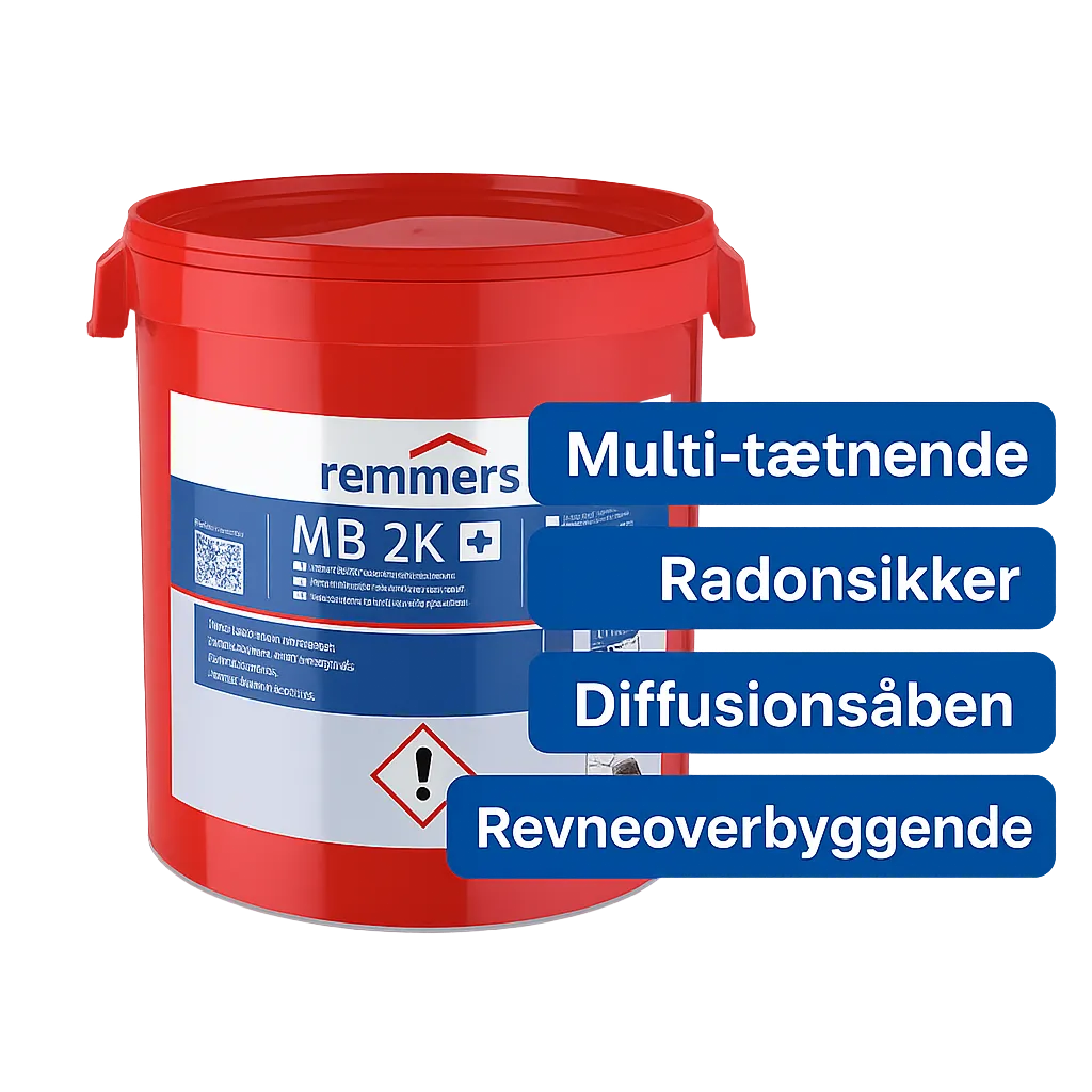 Membranen er udviklet af Remmers. En tysk producent kendt for kvalitetsløsninger inden for fugtsikring. MB 2K opfylder kravene til både nybyg og renovering. Den kan anvendes udvendigt såvel som indvendigt, og den er testet efter gældende standarder for vandtætning (f.eks. DIN EN 14891 for membraner under fliser og DIN 18533 for bygningsvandisolering). Kort sagt er Remmers MB 2K en alsidig totalløsning til at holde vand og fugt ude af bygningen, uanset om det drejer sig om en kælder, et vådrum eller en sokkel - udviklet til brug af private og professionelle